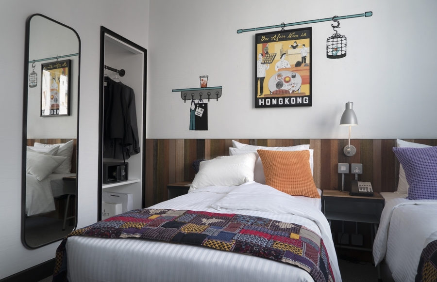 Offering a space of 22m², Cozy Rooms are tailored feel with Tsim Sha Tsui themed graphic walls. They are fully equipped with king-size beds that can be twinned, writing desks, high speed wireless internet access and LED TV. All bathrooms are sticking to a vintage-inspired decor showcasing beautiful and colourful retro tiles.