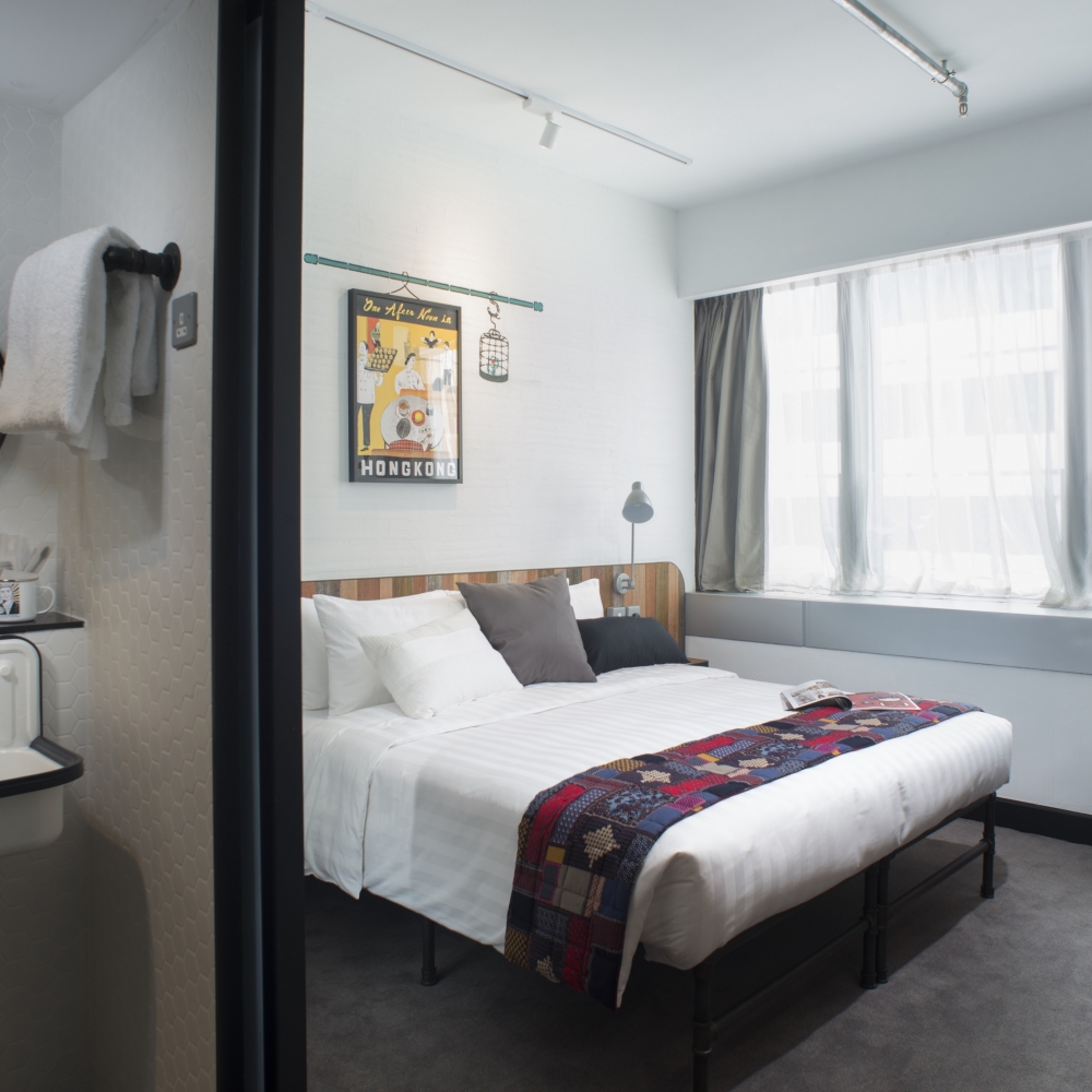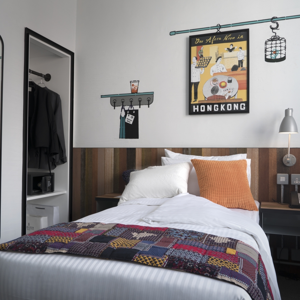 Offering a space of 22m², Cozy Rooms are tailored feel with Tsim Sha Tsui themed graphic walls. They are fully equipped with king-size beds that can be twinned, writing desks, high speed wireless internet access and LED TV. All bathrooms are sticking to a vintage-inspired decor showcasing beautiful and colourful retro tiles.