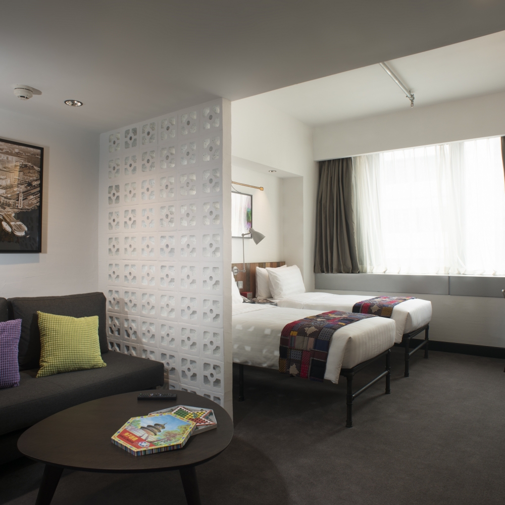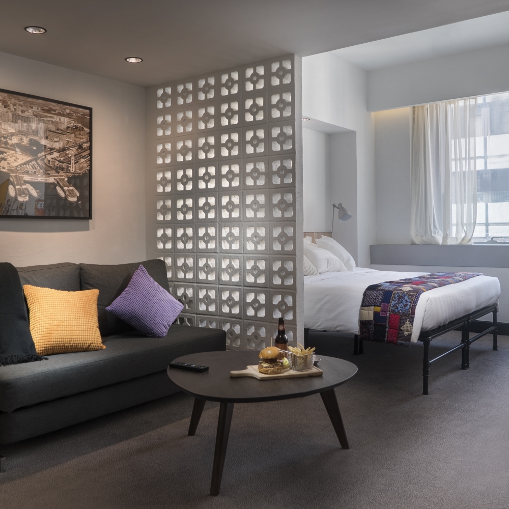 Offering a space of 35m², these spacious Studio King/ Twin Suites are open-plan in design with separate sleeping and lounge featuring large windows with charming views of Granville Road.